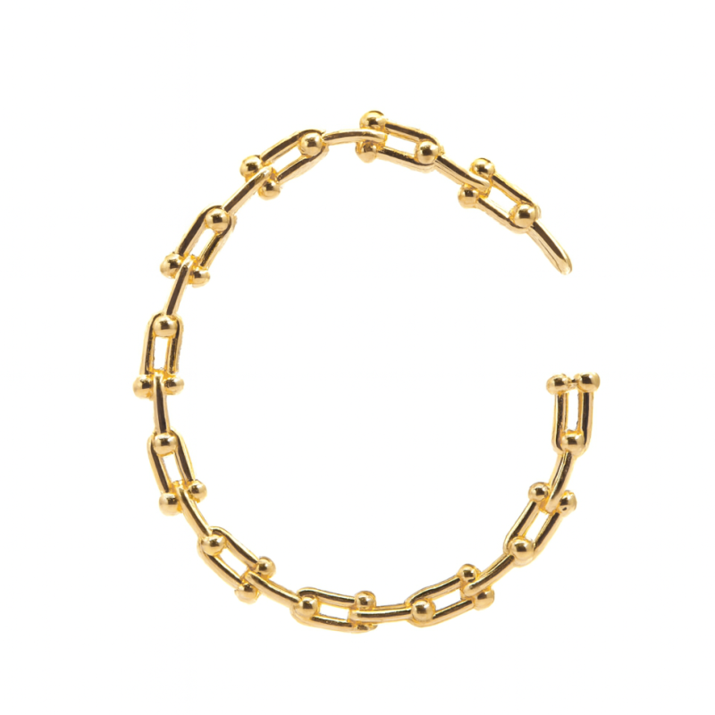 Pulsera de diseño moderno y sofisticado, elaborada en base de cobre con baño de oro (Covergold rodinado), que ofrece un acabado brillante y duradero.