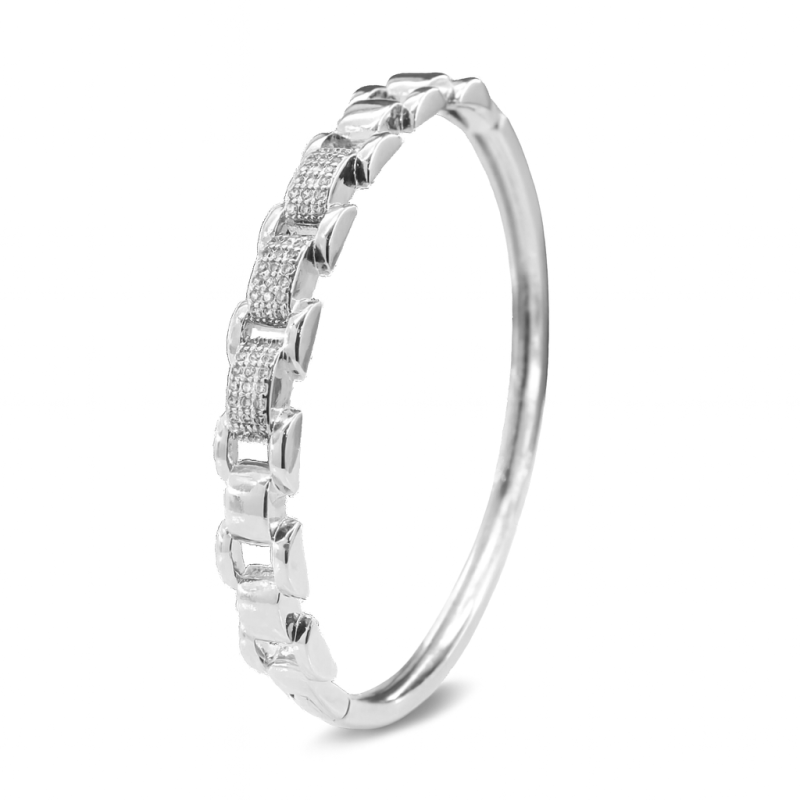 Pulsera de diseño elegante y contemporáneo, elaborada en base de cobre con baño de oro y acabado rodinado (Covergold), que ofrece un tono plata sofisticado y un brillo refinado.