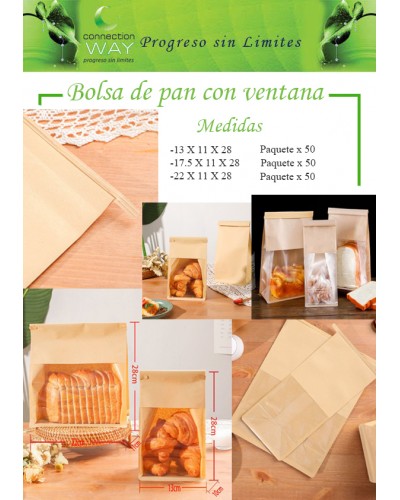 Bolsa para pan con ventanas calibre 8 paquete x 50